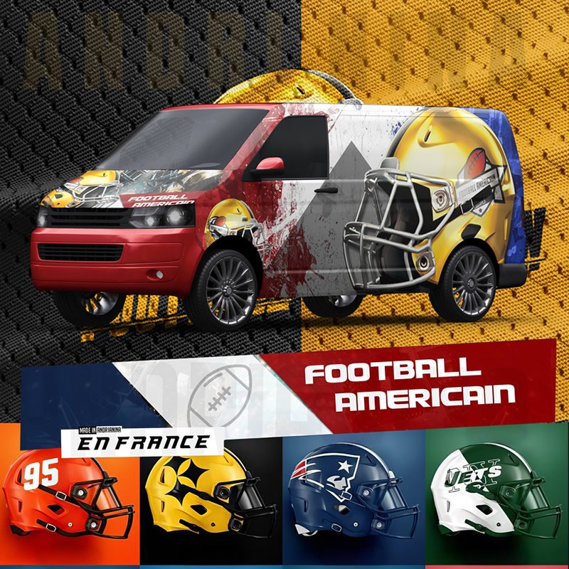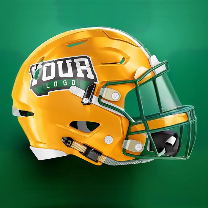 Création graphique d’un casque de football américain V2.0 en HD, personnalisé aux couleurs et au logo du club. Rendu en Haute Résolution. Reprise des couleurs exacte du club avec incrustation du logo. Licence : Utilisable sur tous les supports digitaux et physiques. Droit d’utilisation pour 10 ans. Livré sous 14 jours en format .PNG avec un fond transparent.