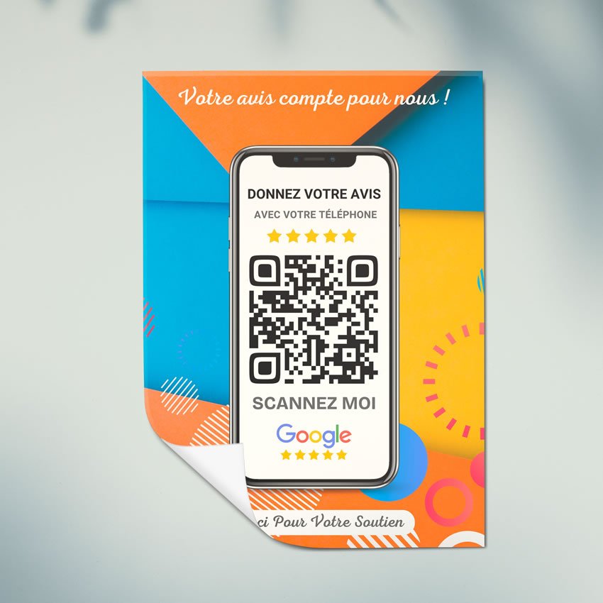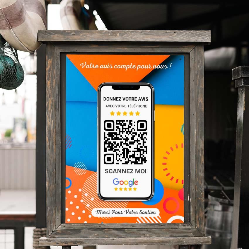 • Modèle QR Code (11,97 € HT) : Permet aux clients de scanner un code pour accéder à votre page d’avis.