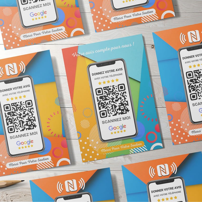 Les stickers permettent à vos clients de laisser facilement des avis sur votre fiche Google. Ils simplifient le processus en offrant un accès direct via un QR Code ou une puce NFC.
